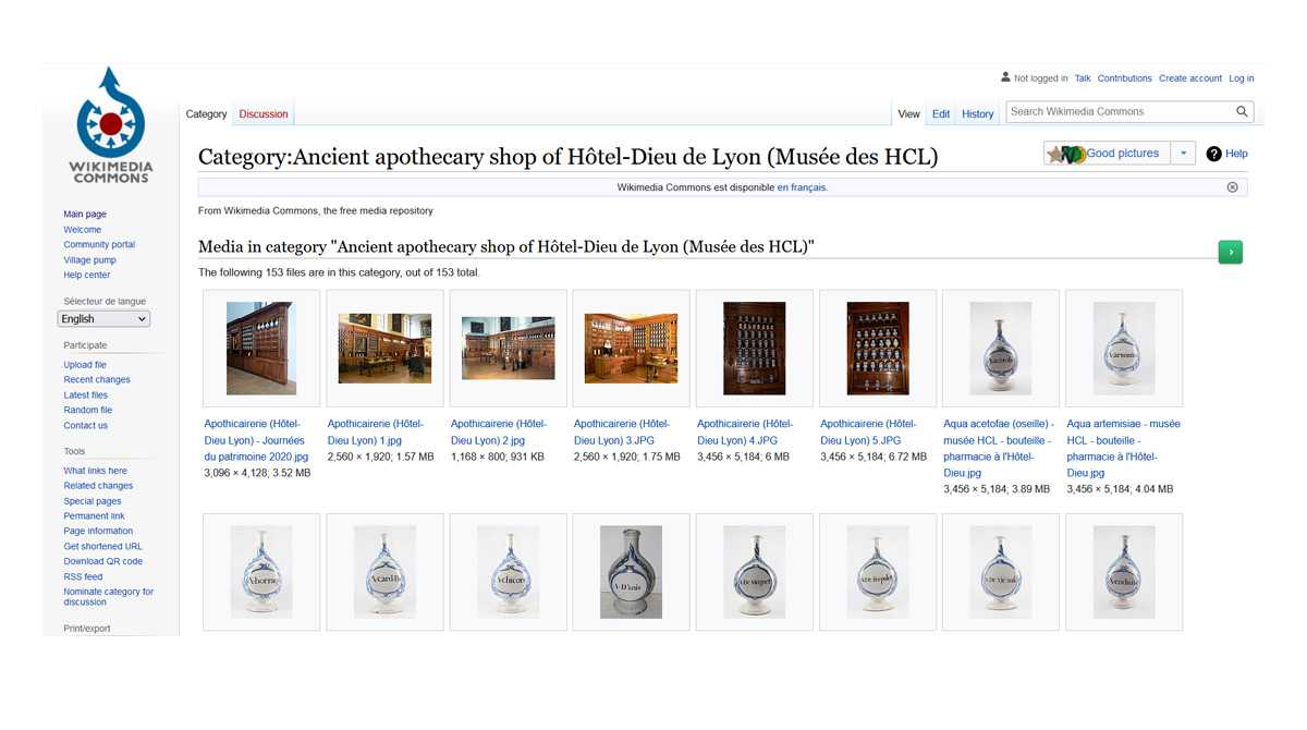 Chacun peut ainsi connaître plus en détail les produits pharmaceutiques qui étaient contenus dans les près de 150 pots de l’apothicairerie de l’Hôtel-Dieu, que vous pouvez voir à la Cité Internationale de la Gastronomie, et illustrer des articles sur Wikipedia avec ces images et les compléter à l’aide de ces informations.