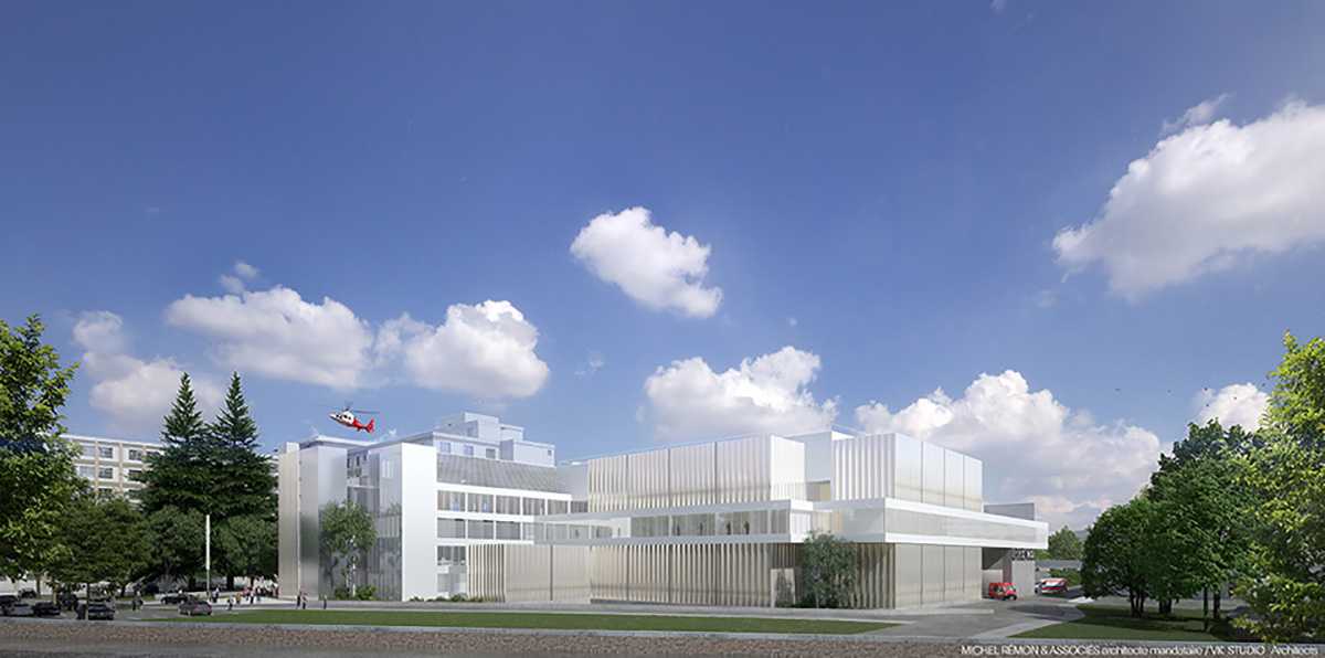 Après 3 années passées à créer l’hôpital de demain, l'atelier d'architecture Michel Rémon & Associés (associé à VK Architects) a remporté l’appel d’offres. La contrainte est double : réhabiliter et rénover des secteurs du bâtiment chirurgical 3A, pour héberger essentiellement des chambres et construire un nouveau bâtiment neuf lié à la façade du 3A pour abriter le plateau technique (blocs, urgences et réanimation).