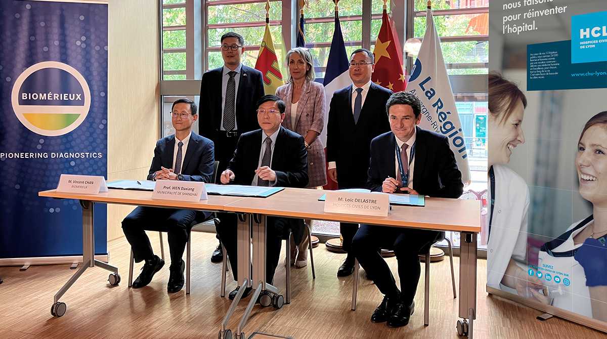 Interrompue par la crise sanitaire, cette coopération a repris en 2023 et a été officiellement reconfirmée le 31 mai 2024. La signature du Mémorandum de coopération entre la Municipalité de Shanghai, bioMérieux Chine et les Hospices Civils de Lyon a eu lieu dans les locaux de la Région Auvergne-Rhône-Alpes.